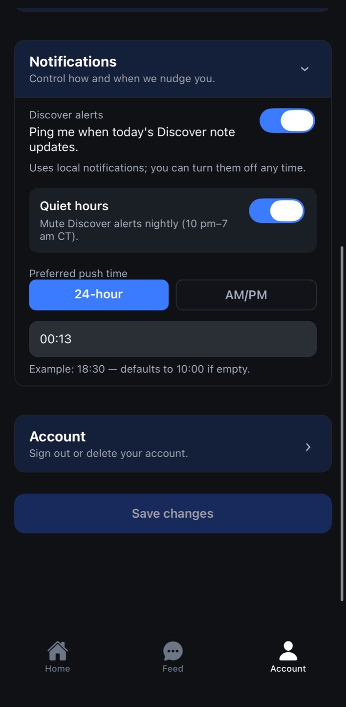 Control when you’re nudged: preferred push time and quiet hours.