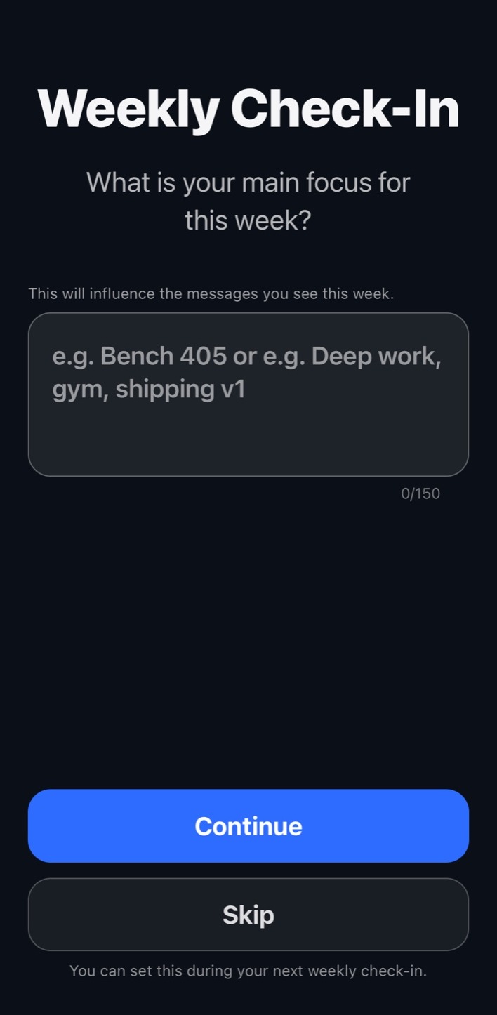 Set your main focus for the week so YVY can keep your messages aligned with what you’re actually trying to move forward.